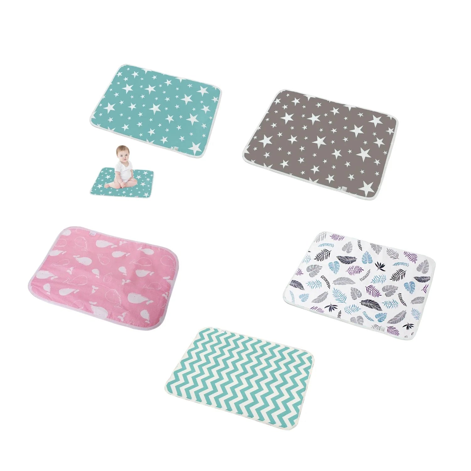 Choose from Pink Whale, White Autumn, Green Wave, Grey Star, or Green Star—stylish and practical options to match your baby’s essentials!