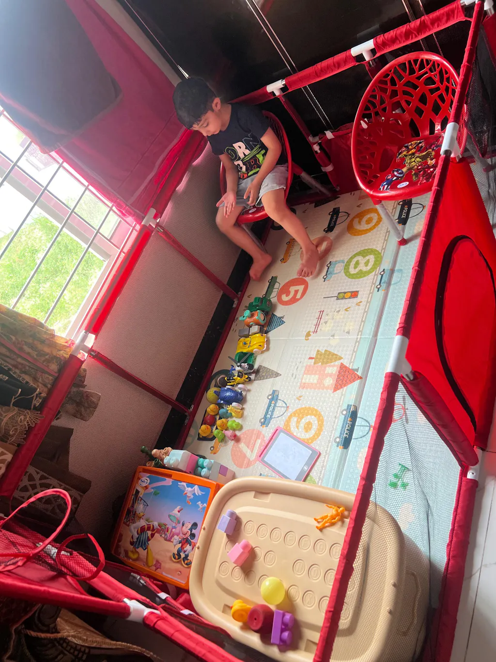 Red Rectangle Playpen: Safe, Spacious Fun